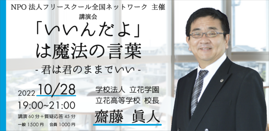 NPO法人フリースクール全国ネットワークが主催をし、立花高等学校 校長齋藤眞人さんをお呼びします!